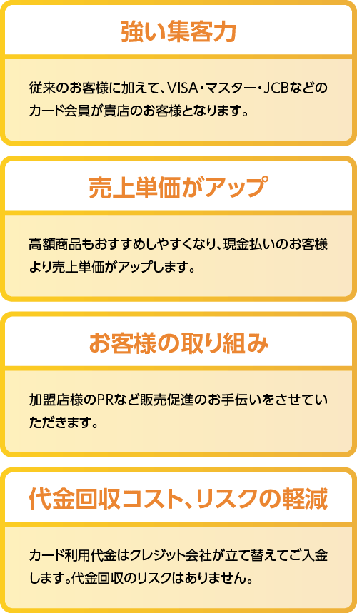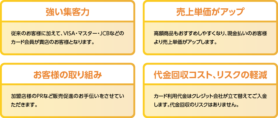 クレジットカードのお取扱いは、伝票に必要事項を記入し、お客様にサインをいただくだけ、とっても簡単!