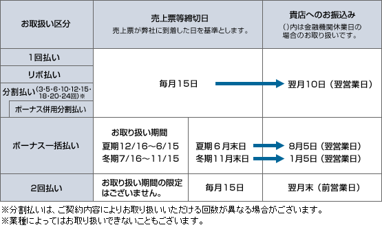 支払いサイクルのご案内 加盟店の皆様へ ~追加契約変更手続き・用度品のご案内~ TOPへ
